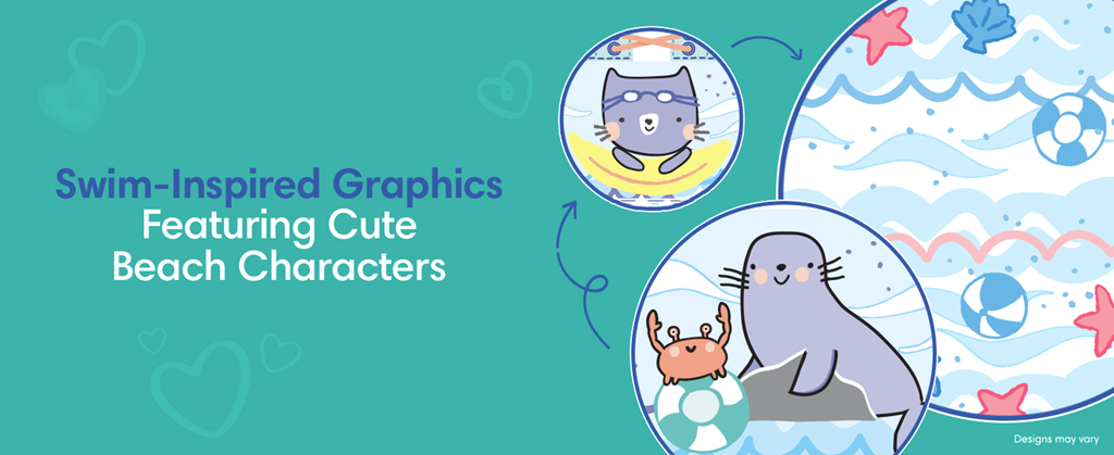 • Swim-inspired, all-over graphics for a design that looks like swimwear