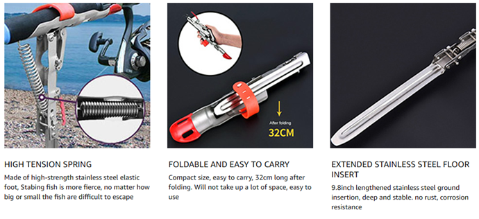 • 【Automatic Fishing Rod Holder】 The automatic spring fishing rod holder has high sensitivity. When the bait is bitten by the fish, the automatic spring device is triggered. The fishing rod holder immediately automatically pulls up the fishing rod without manual operation, freeing your hands and enjoying the fun of fishing easily!