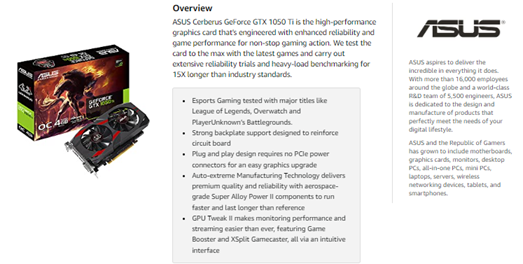 Graphics Coprocessor | NVIDIA GeForce GTX 1050 |