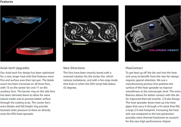 • Axial-Tech Fan Design has been newly tuned with a reversed central fan direction for less turbulence.