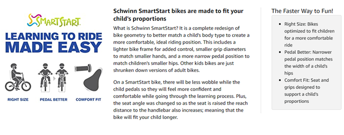 • SmartStart steel kids balance frame with rigid fork features kid-specific proportions for easier handling
