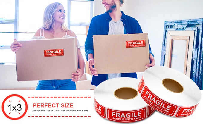 Bareical fragile stickers 1x3" for shipping and moving