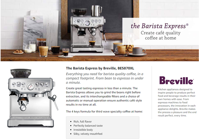Breville Barista Express Espresso Machine, Brushed Stainless Steel, BES870XL