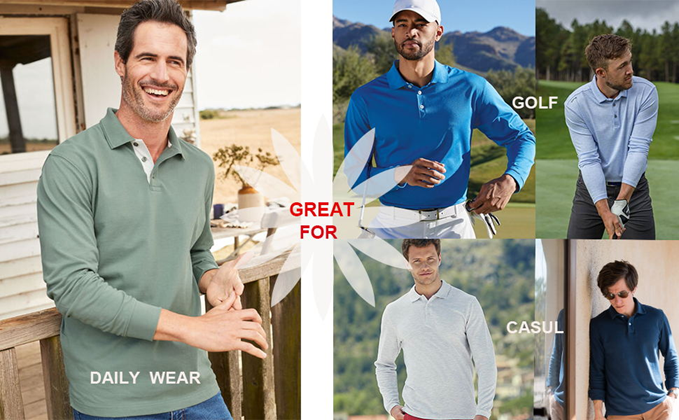 SIZE AND COLOR: Casual mens long sleeve polo shirts, based on classic fit u.s size: S, M, L, XL, XXL, 3XL with various colors: black white grey green navy blue purple that you can have different look everyday.