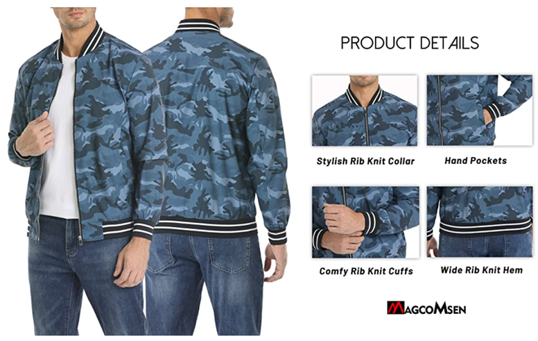 MAGCOMSEN Mens Bomber Jackets Lightweight Windbreaker Full Zip Spring Jackets Casual Stylish with Pockets