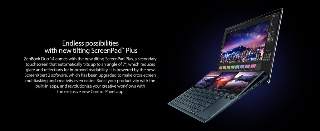 - ScreenPad Plus: 12.6 inch matte touchscreen, giving you endless way to optimize your multitasking experience by extending the screen or split windows and apps on both displays