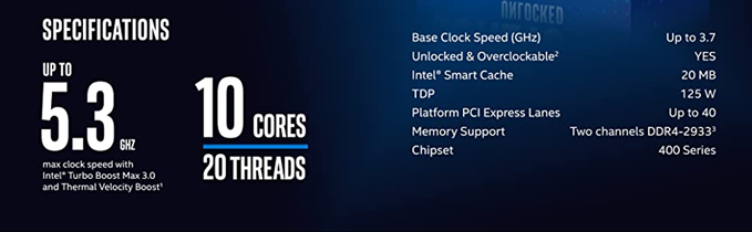 Intel Core i9-10900K Desktop Processor 10 Cores up to 5.3 GHz Unlocked? LGA1200 (Intel 400 Series Chipset) 125W