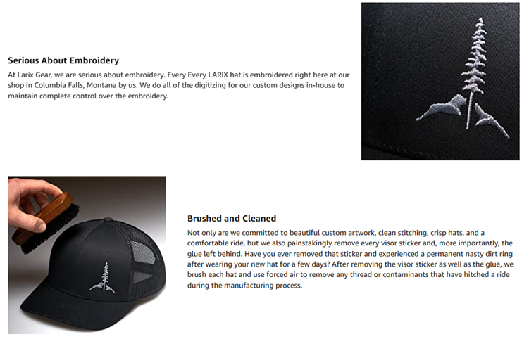 • SERIOUS ABOUT EMBROIDERY : Every Larix hat is embroidered right here at our shop in Columbia Falls Montana by us. It's our highest priority to achieve outstanding results by using the most advanced sewing technology and techniques available today.