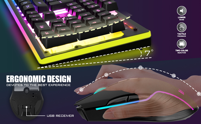 2. The keyboard and mouse share only one USB receiver, which is located in the bottom of the mouse. (Only when the receiver is plugged in, the lights of the keyboard and mouse will light up)