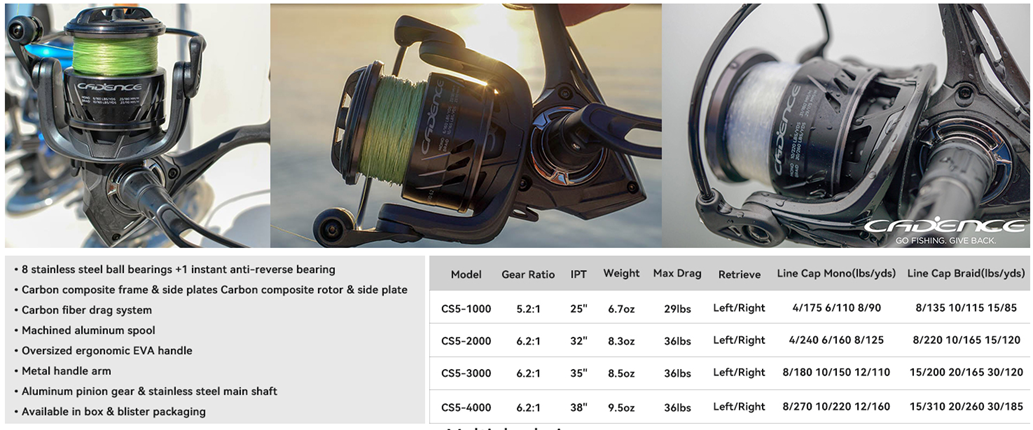 - Great Value.Cadence spinning reels offer the coarse angler high-performance premium fishing tackle at an unbeatable price.We manufacturer high-quality, feature-packed match fishing reels. Cadence products have been designed by anglers who are out on the bank, fishing day in, day out.