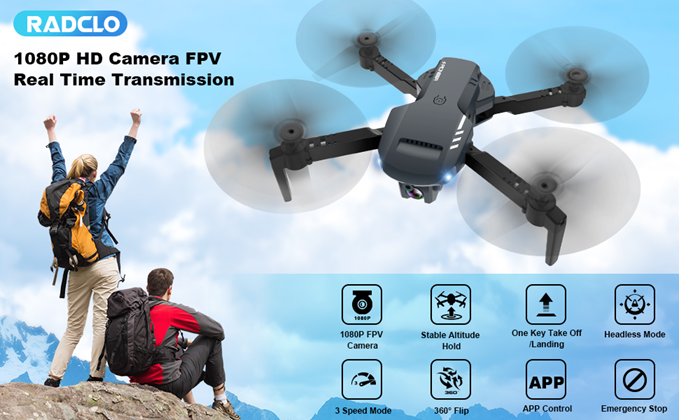 - 【1080P Adjustable FPV Drone & APP Control】Equipped with a 1080P HD 90° manually adjustable lens, the drone provides a wider breathtaking field of view. It assists you to catch every wonderful moment from a birds-eye perspective, and lets you enjoy 1080P HD pictures and videos via the “RADCLOFPV” APP. By connecting your phone/iPad with the long-distance drones with cameras, you can enjoy a real-time panoramic view, and share them on your social media with ease.