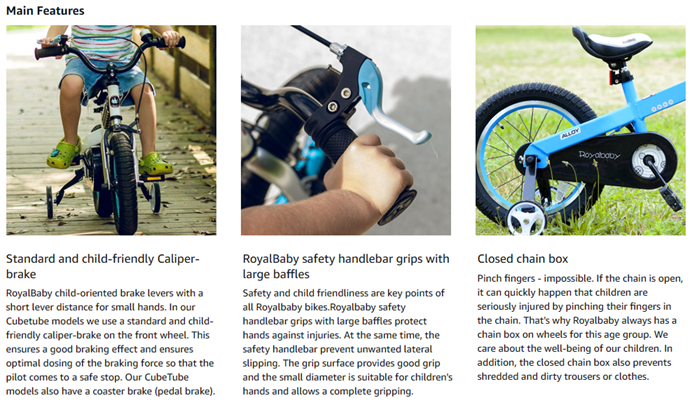 • ?SAFETY-RoyalBaby bike complies with the highest CPSC and EU industrial standards and is trusted by millions of families in more than 80 countries globally.