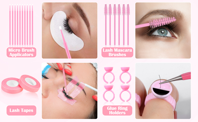 • 【Perfect Eyelash Extension Starters Kit】Straight lash tweezers are used to isolate natural lashes or pick up individual lashes.Curved lash tweezers are suitable for picking up big premade fans and easy fan volume lashes. Glue-hold rings and disposable mascara wands can make it convenient to dip glue in the process, eye gel pads can protect fragile skin around your eyes from lashes sticking. The lash tape is made non-woven, lint-free, easy to tear and can protect the fragile skin around the eyes.