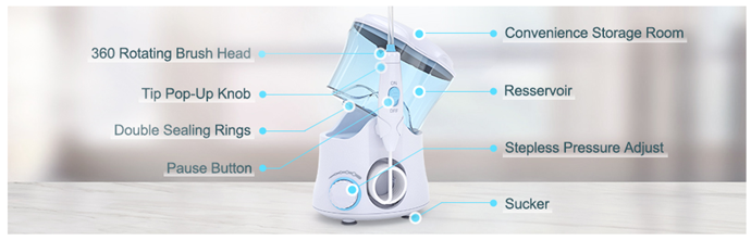 • 【7 Household Multifunctional Nozzles】The household oral irrigator has 7 heads, including 3 classic nozzles, 1 tongue cleaner, 1 dental plaque head, 1 orthodontic head, and 1 periodontal head. These multi-function nozzles can help you clean the hard-to-reach areas of the toothbrush. The nozzle can be stored in the sealing groove cover hygienically and conveniently