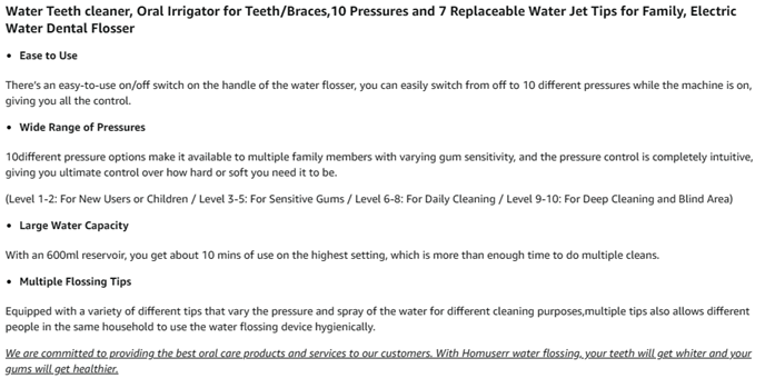 • 【Free Replacement for 12 Months】Water Dental Floss We promise to manufacture dental floss in accordance with strict quality standards to provide our customers with a better experience. It is recommended by dentists and doctors for oral hygiene and home care. If you have any leakage or non-working problems, please contact us and we will reply immediately to resolve all your concerns