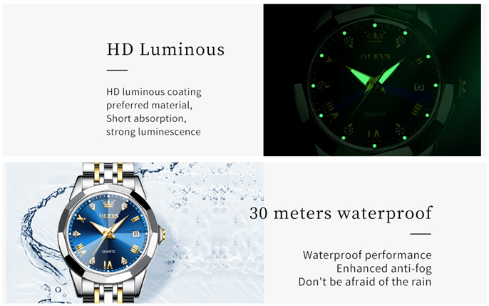 Special features | waterproof 3ATM, stainless steel women watches, day date ladies watches, olevs women watches, female watches |