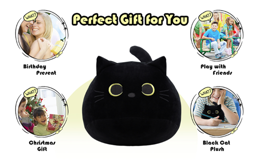 • The perfect gift: Anime Cat Soft Throw Pillow, cute pillow plush toys and is very suitable for children to play. No one doesn't like cute soft and fluffy plush dolls. This soft and cute black cat pillow is a gift for children, friends and family. Lovely shape will bring them good luck and happiness