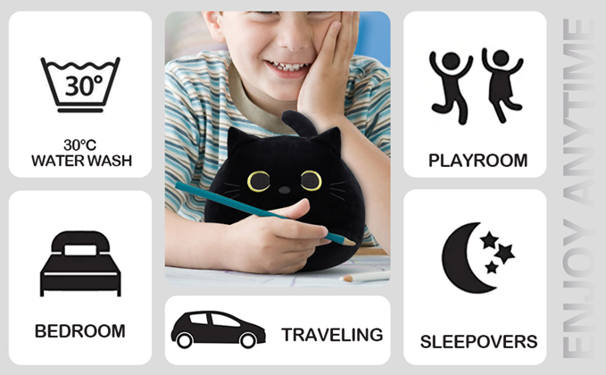 • High-quality materials: iBccly Cat Stuffed Animal is made of high-quality soft and comfortable plush fabric, filled with pp cotton.Cat Plush Doll Toy is safe and durable, soft and skin-friendly, giving you a beautiful and comfortable skin touch. Every cute doll pillow has undergone many quality inspections. This is a quality-guaranteed black cat doll pillow.