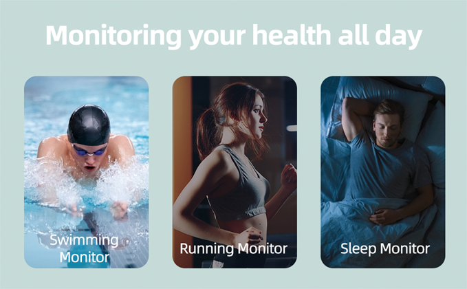 Sports Function: Q9 PRO sport watch has 24 exercise modes: Outdoor running, Cycling, Jump rope, Swimming, Badminton, Table tennis, Tennis, Mountain climbing, Walking, Basketball, Football, Baseball, Volleyball, Cricket, Rugby, Hockey, Dancing, Spinning, Yoga, Sit-ups, Indoor running, Gymnastics, Rowing, Jumping jacks.