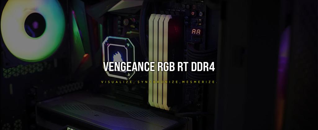CORSAIR VENGEANCE RGB RT DDR4 memory punches up your PC’s aesthetics while delivering outstanding performance optimized for AMD systems. Every module boasts ten individually addressable RGB LEDs for brilliant illumination and a dual-tone heatspreader for sharp looks and superb cooling. VENGEANCE RGB RT can automatically configure to maximum system speeds for faster load times and smoother multitasking. Take control with CORSAIR iCUE software and customize RGB lighting to match your setup, create custom lighting profiles, and synchronize with all iCUE-compatible devices across the entire iCUE ecosystem. A custom PCB provides high signal quality for superb performance and stability, while tightly screened memory chips unlock superior overclocking ability. For mesmerizing, customizable RGB lighting and remarkable DDR4 performance, equip your PC with VENGEANCE RGB RT.