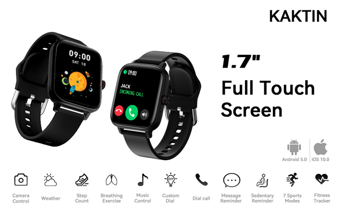 - 【Wider Compatibility&Service】KAKTIN digital sport watch is compatible with most iOS 10.0 and Android 5.0 and above Huawei, Samsung, iPhone, etc smartphones. The fitness tracker watch with 12 month after-sales guarantee, The package includes: Smart Watch*1,TPU Silicone Strap*1, Magnetic Charger*1,User Manual*1. If your have any problem, please contact our customer service via your amazon account.