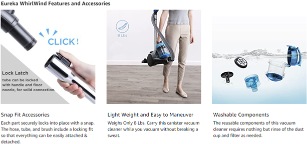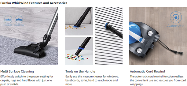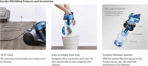 Special Feature | Automatic Cord Rewind, Lightweight, Wheels, Bag, Washable Filter |
