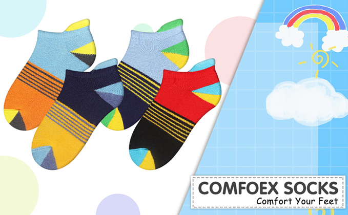 Comfoex Boys Socks Ankle Athletic Socks For Kids 4-6 6-8 8-10 Years Old Short Cotton Half Cushioned Socks 6 Pairs