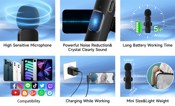 Compatible Devices | Wireless Lavalier Microphone, PQRQP Wireless Lavalier Microphone, PQRQP Dual Wireless Lavalier Microphone, Wireless Microphone, Smartphone |