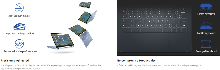 - The Full HD display has a durable 360 degree hinge that can be used to flip the touchscreen display to tent, stand, and tablet mode