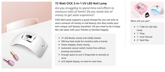• 【About Our CICK Nail Lamp】Your satisfaction is our priority, our items provide 12 months customer service, if you have any problem, please feel free to contact us. So you can buy them without worry. Our gel nail lamp is the ideal gift for birthday, party, wedding and so on.