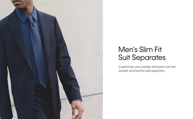 - The advantage of the Calvin Klein Slim Fit Suit Separate is the ability to customize your jacket and pant size. Select your sizes and add them to the cart separately.