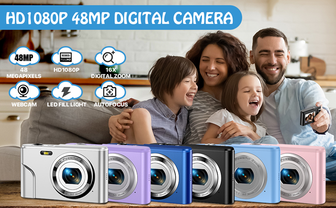 • 【Auto Focus & Easy to Use】This Compact mini digital camera with an sd card has an autofocus function that is useful for photographers to concentrate more on capturing the momentary scene of the subject. It is very light and small, smaller than a smartphone, you can easily put it in your pocket and carry it anytime, anywhere. This point-and-shoot digital camera is very easy to operate and simple to control, very suitable for the elderly, teenagers, children, and students.