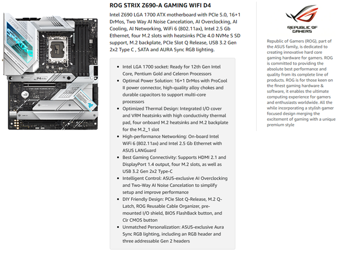 Item model number | ROG STRIX Z690-A GAMING WIFI D4 |