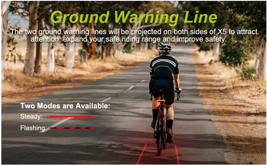 • ?【AUTO BRAKE LIGHT & GROUND WARNING LINE】The light will highlight to remind the cars and pedestrians behind you when braking. Unique ground warning lane warns any possible incoming vehicle, providing riders with their own virtual lanes to further increasing visibility.