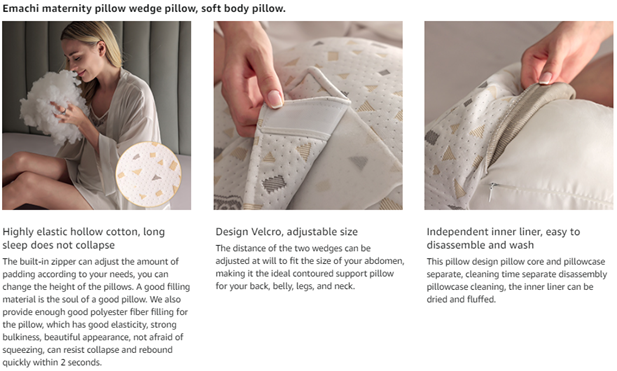 Emachi maternity pillow wedge pillow, soft body pillow.
