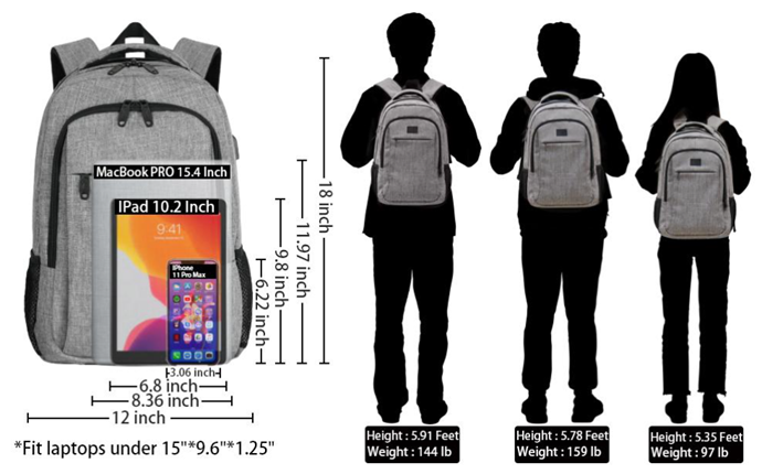 ★USB PORT DESIGN: With built in USB charger outside and built in charging cable inside,this usb backpack offers you a more convenient way to charge your phone while walking. It's a great tech gift for him from wife, daughter and son. Please noted that this backpack doesn't power itself, usb charging port only offers an easy access to charge