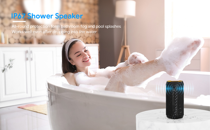 - ?♂️?????? ?? ??? ??: IP67 dustproof and waterproof speaker weights only 440g, making this portable speaker perfect for outdoor, hiking, beach and even as waterproof shower speaker. The built-in mic provides high quality and convenient hands-free call