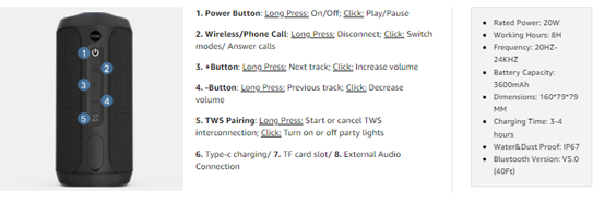 - ????????? ??????: 20W loud bluetooth speakers cover a wide frequency range of 20-20K Hz with deep bass, accurate mids and crisp highs even at full volume