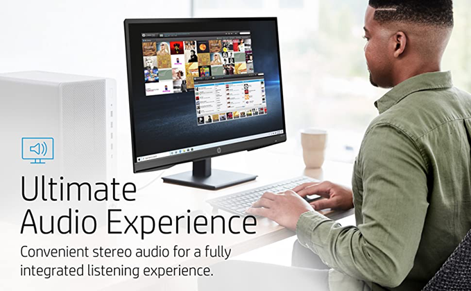 The HP M27ha FHD Monitor is an affordable option for those looking for a great work from home setup. The optimized screen offers crisp pictures on a full HD display with ultra-wide viewing angles. You can stare at the 27-inch monitor all day since HP Low Blue Light software filters blue light without leaving the yellow tint. The comfortability continues as you adjust your computer monitor’s height or pivot to your liking and use the VESA mounting compatibility to find the right position in your home office. You will finally achieve your multimedia setup as you enjoy convenient audio built into the display and utilize HDMI, DisplayPort™, and VGA ports.