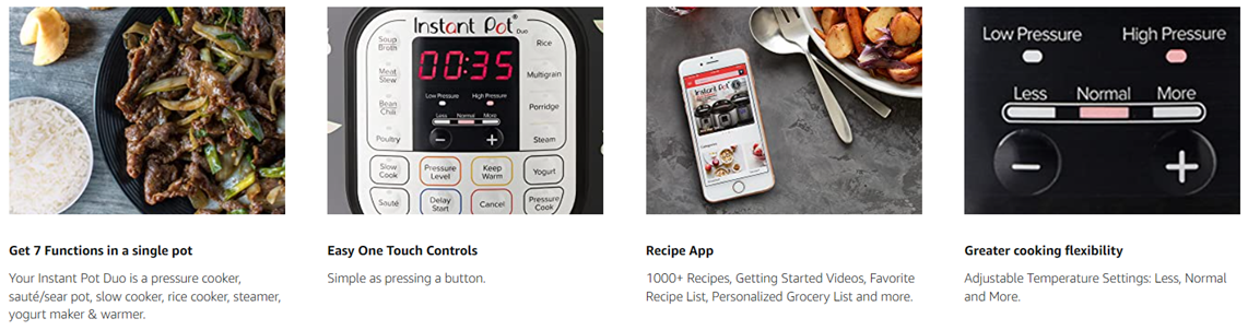 • Features 13 Smart Programs - Soup, Meat-Stew, Bean-Chili, Poultry, Sauté-Simmer, Rice, Multigrain, Porridge, Steam, Slow Cook, Keep Warm, Yogurt, Manual, and Pressure Cook. Now, your favorite dishes are as easy as pressing a button