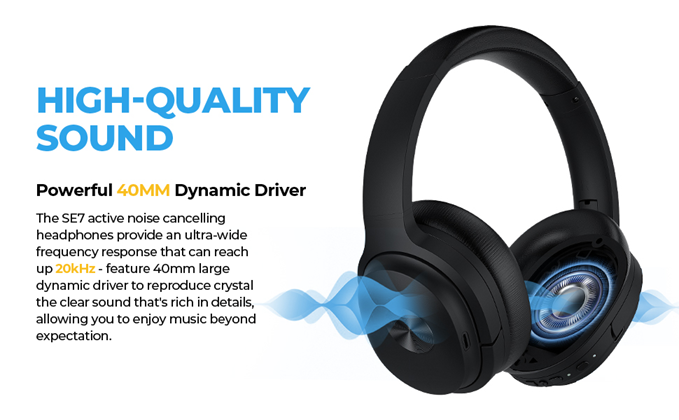 - Amazing Audio Quality for a Truly Immersive Experience - With advanced speaker diaphragm and chip, our SE7 headphones deliver impeccable sound quality. The 40mm Large Aperture Drivers transmit every detail of audio to your ears perfectly, so you can hear your music exactly as it was intended to be heard.