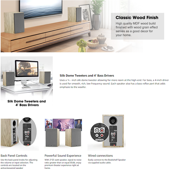 - Stunning Sound for All Entertainment- Use this bookshelf speakers to watch TV, listen to music and play games, you will always hear every instrument, dialogue, explosion, and detail with pristine clarity and ear-pleasing loudness.
