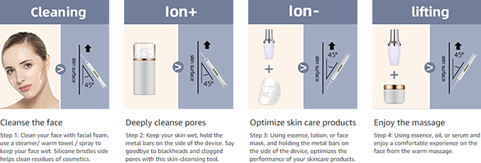 • Skincare Assistant: The skin scrubber can combine with skin care products, and optimize the performance of the cream and essence up to 20 times. Enjoy a comfortable experience on the face from the warm massage.