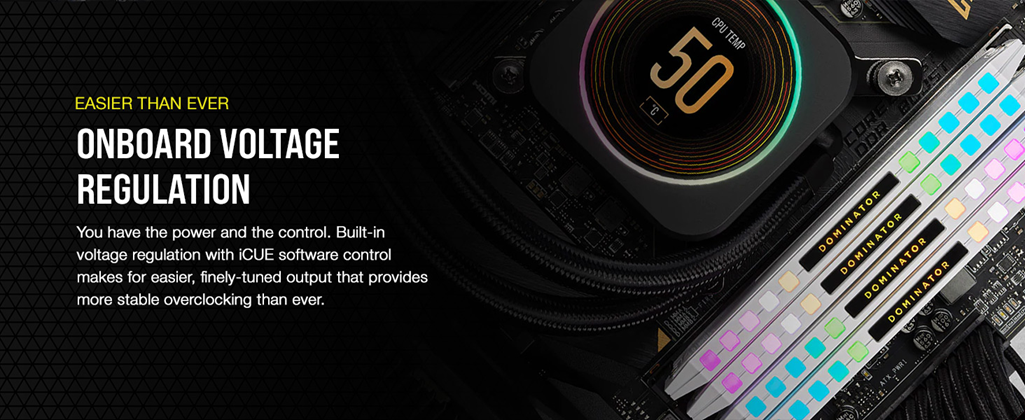 - Onboard Voltage Regulation: Makes for easier, finely-tuned, and more stable overclocking through CORSAIR iCUE software than ever.