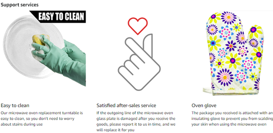 • ?【Easy to clean】Our microwave turntable is easy to clean and can be cleaned with cloth, paper towel, soap or dishwasher. The glass turntable collects oil/water droplets/food leaked during cooking. Save energy and time.
