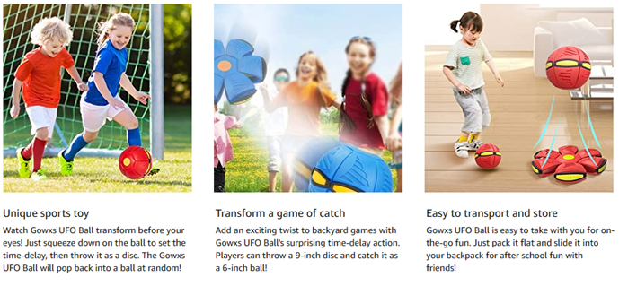 Gowxs UFO Ball,Magic Ball Toy,UFO Portable Flying Saucer Toys Stomp Magic Ball Childrens Toy,Time Delay Transformation Flying Toy,Creative Decompression Ball Toy for Kids Boys and Girls Outdoor Gift(G