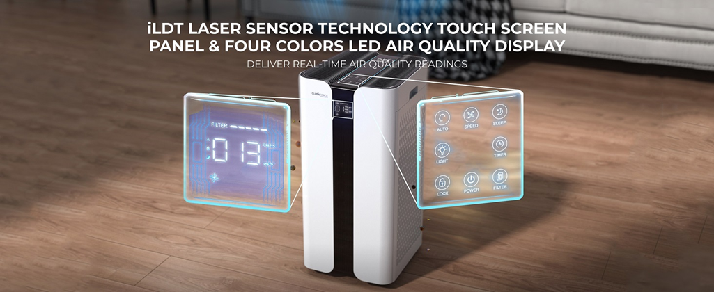 • <b>SIMPLE TOUCHSCREEN & REMOTE CONTROL OPERABLE:</b> Easy touch screen controls with smart auto mode, 4 fan speeds, 12-Hour Timer, sleep mode, 4 colors LED air quality display, auto on/off, and child lock. Enjoy the flexibility of controlling your air purifier with a remote.