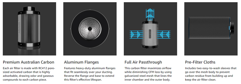 Each carbon filter features premium-grade Australian Virgin charcoal bed rated at 1200+ IAV. It achieves a 38mm charcoal bed thickness and wider mesh openings thanks to a higher microporosity and surface area rating. This combination not only enables a higher adsorption rate without restricting free airflow, but it also allows the carbon filter to last up to 33% longer.