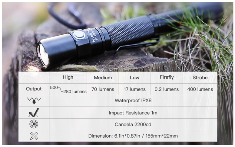 Included Components | Archer 2A V3 flashlight*1, Pocket clip *1, Lanyard *1, Spare O-rings *2 |