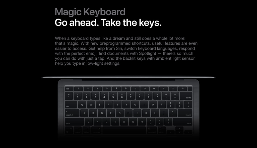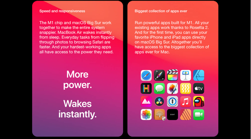 Processor | System on Chip (SoC) Apple M1 chip; 8-core CPU with 4 performance cores and 4 efficiency cores; 16-core Neural Engine |